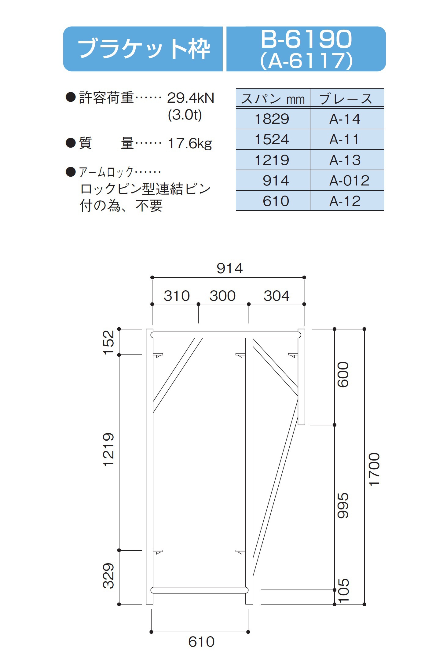 | スパン長 (mm) | ブレースの種類 | 下さん手すりの種類 |