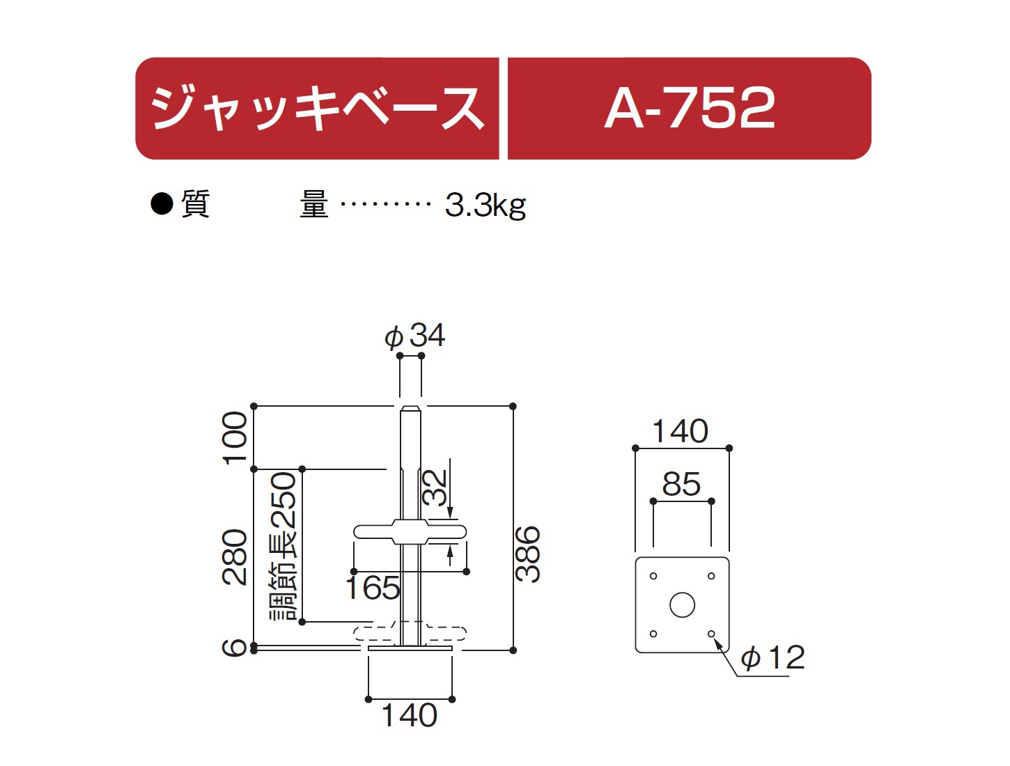 ・ジャッキベースは枠用のジャッキベースが使用可能です。