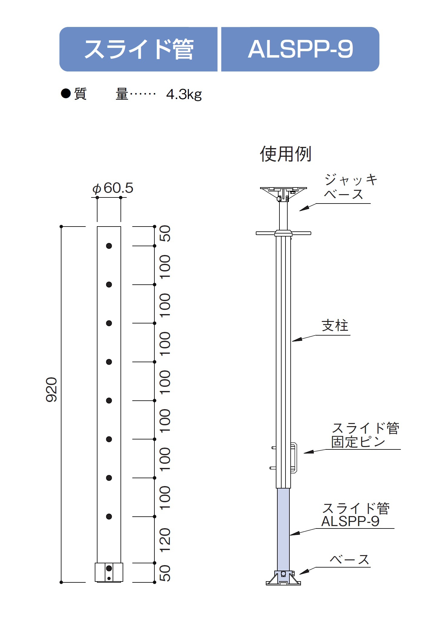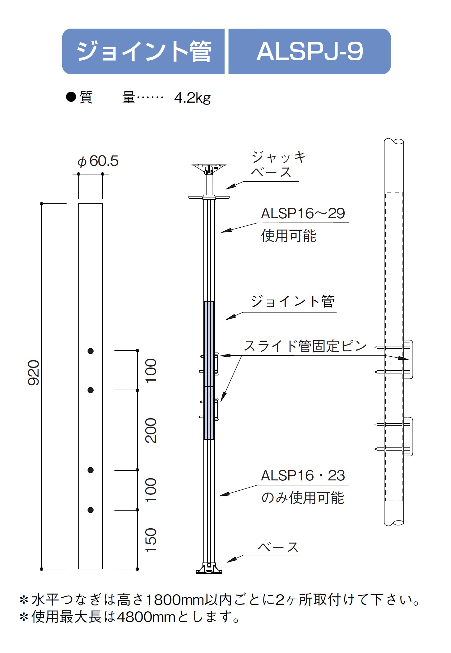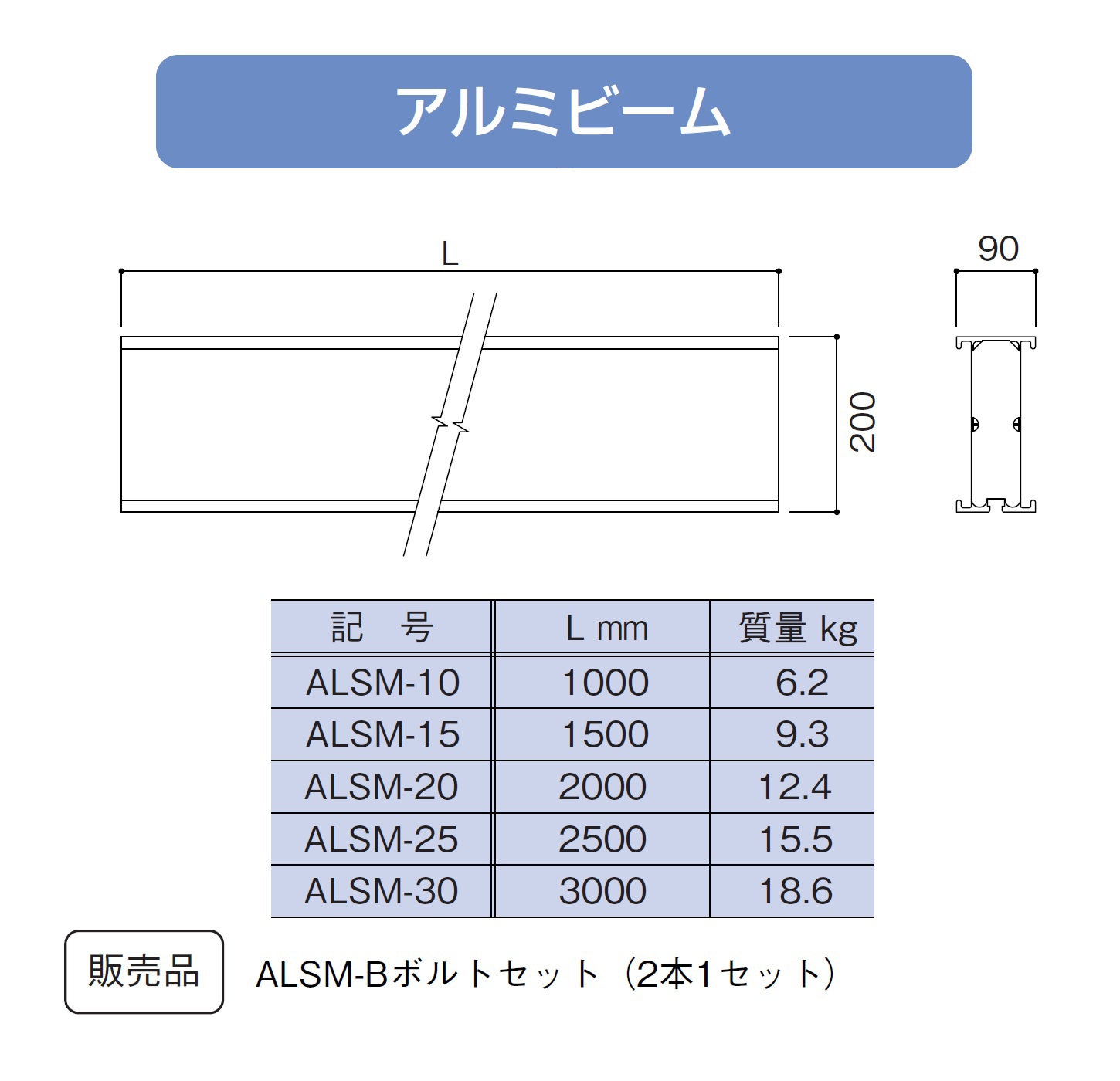 - ◆ アルミビームは100角パイプの2倍以上の強度があります。 (使用長3.8m以上は単管パイプにて直角2方向に水平つなぎをお取り下さい)