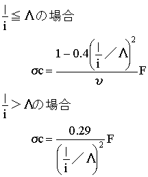 これらの式において、l、i、Λ、σc、υ及びFは、それぞれ次の値を表すものとする。