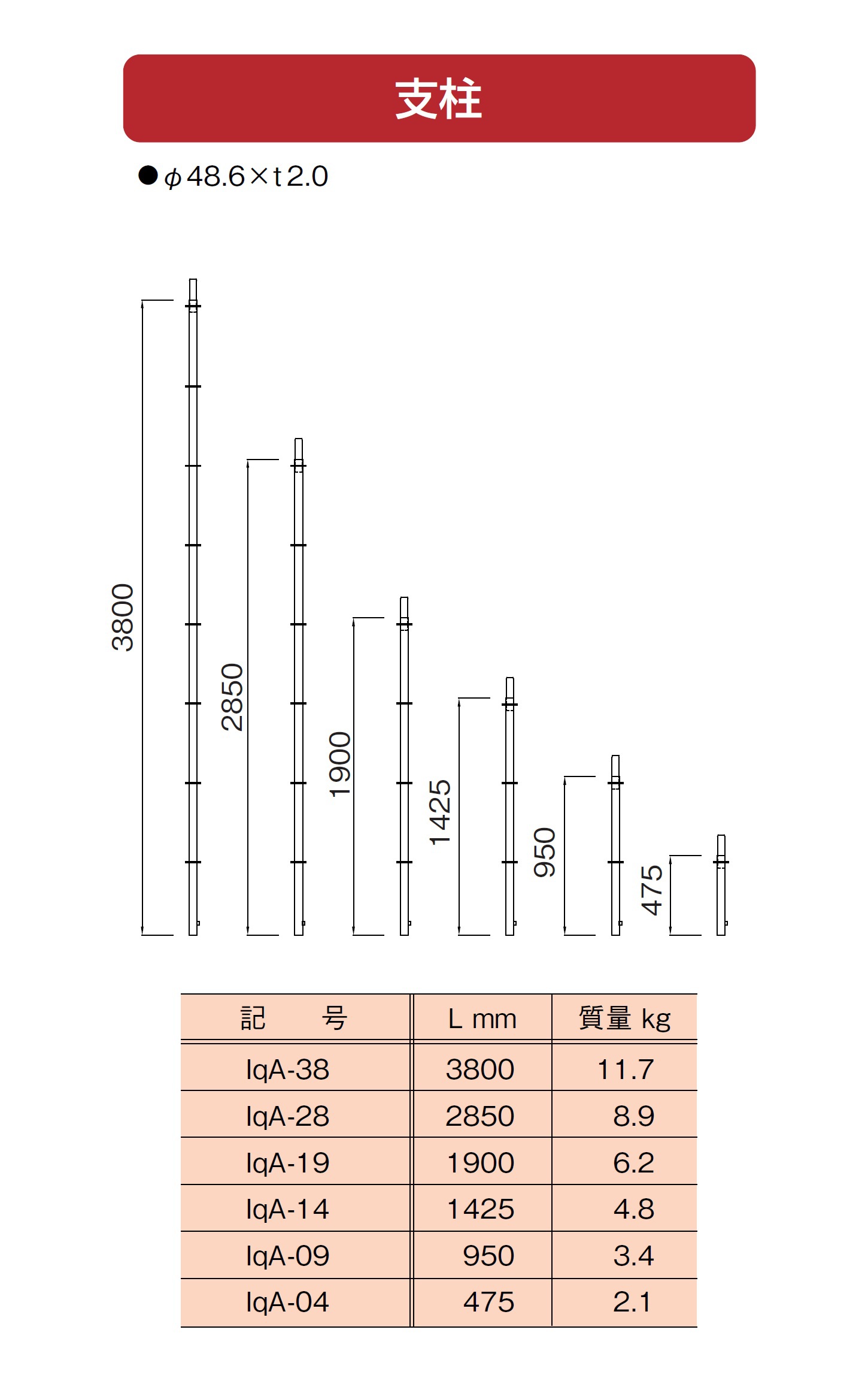 ・支柱の最下端にはジャッキベース(A−752)を使用し、各支柱のレベルを揃えて下さい。