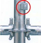 梁枠の直上に朝顔を取付ける場合は 梁枠上の支柱のロックピンが足場の内側に向くように