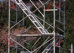 ※ローリングタワーの内側に階段を取付け、内部より昇降ができますので安全性に優れています。軽量の資材なら手に持って昇降が可能です。