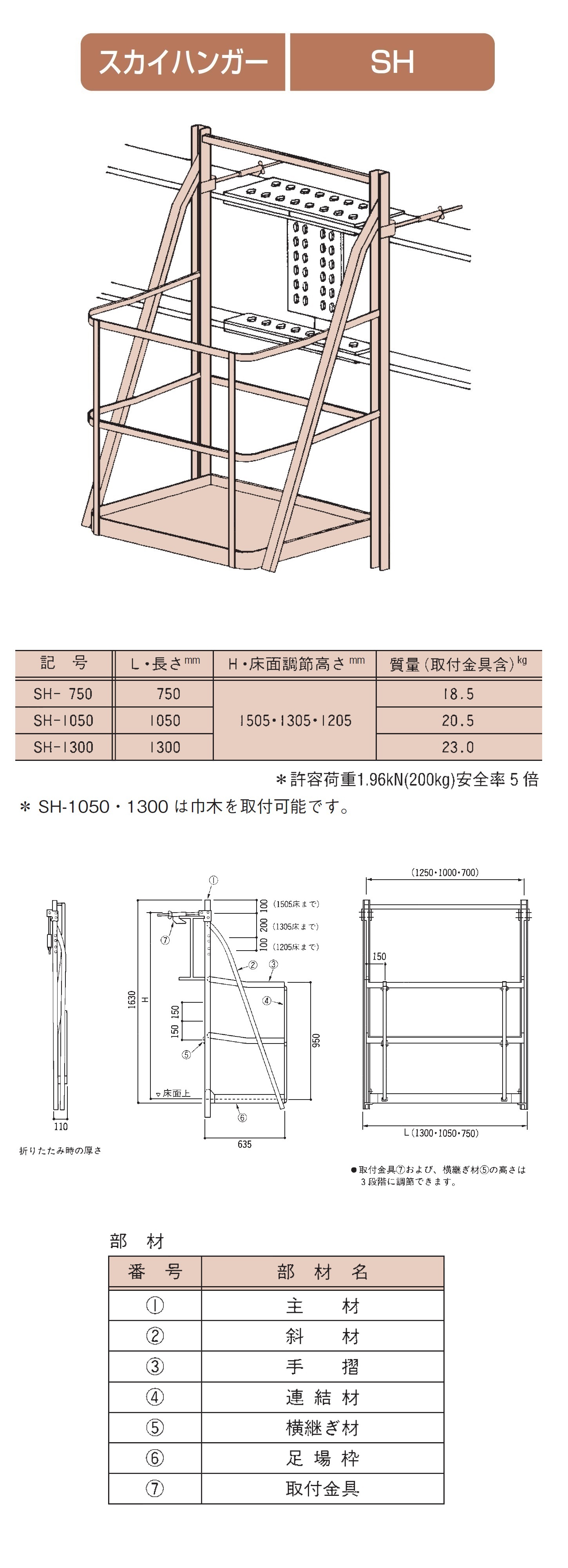 - スカイハンガー は、軽量で一人で簡単に操作ができ、また現場への運搬も簡単に行うことの出来る、アルミ合金製吊り足場です