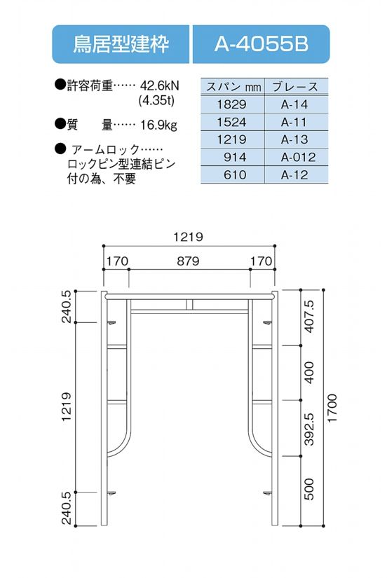 HOME > 商品案内 > 枠組足場・枠組支保工 > 1219巾枠 > A-4055B