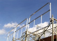 3. 先行手すり枠の下部固定金具を枠組の脚柱にセットします。