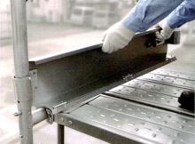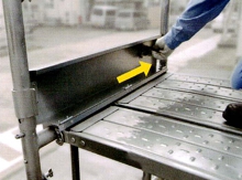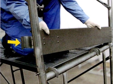 5. 建枠脚柱をはさむようにスライド金具を押し出します。